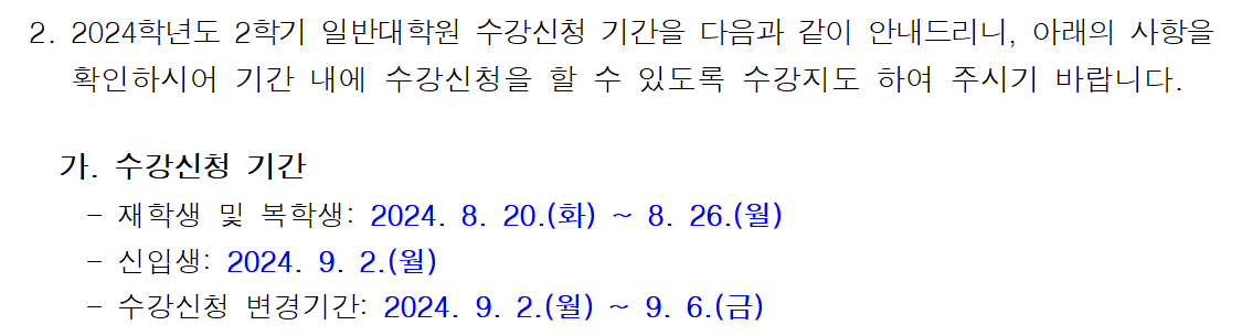 2024학년도 2학기 수강신청 안내